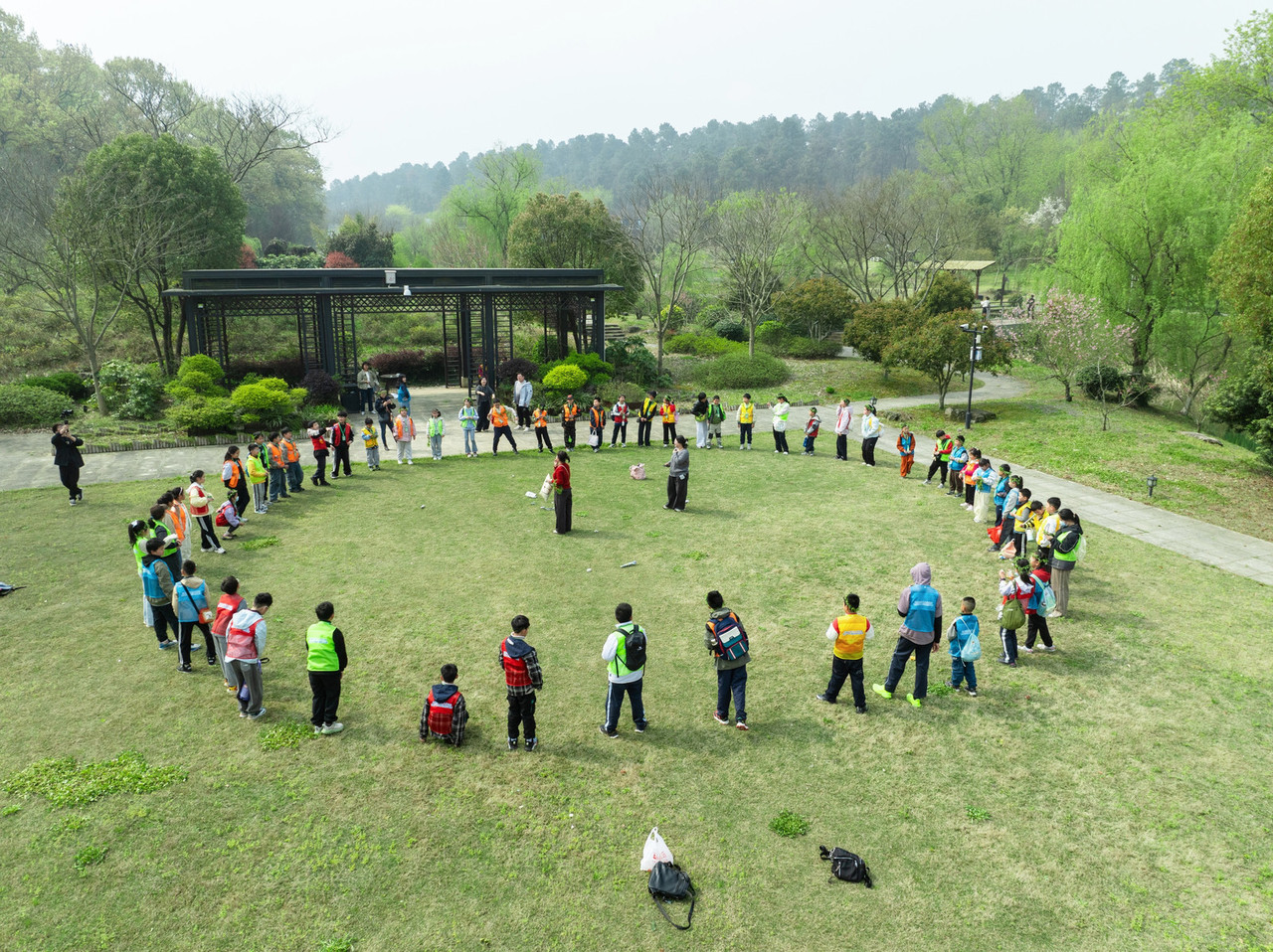 上午8时许,车队出发,驶向濮塘桃李生态园。车内,孩子们隔着车窗数路边的花,车厢里飘满了“那是油菜花!”“那边有桃花!”的惊呼声。到达目的地后,专业老师带着孩子们俯身观察花叶、寻找四叶草、捡拾落花落叶。草地上,柳条在指尖翻飞,编成花环、手环,戴在头上、手腕间,孩子们笑作一团。